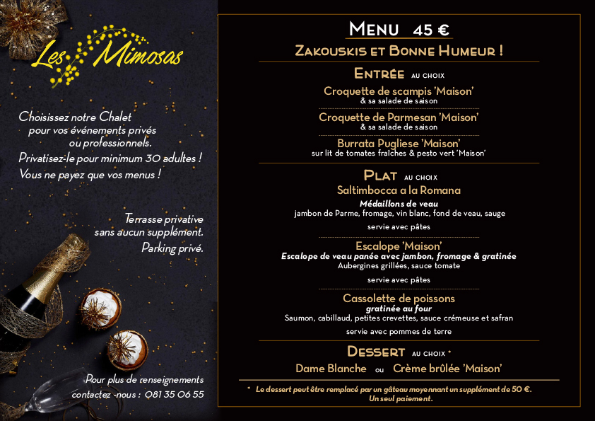 © 2023 Les Mimosas - info@restaurant-mimosas.be - +32 (0)81 35 06 55 - Grand-Route 5, 5380 Hingeon (Fernelmont) - BE0767780833 | Mise à jour Mister IT